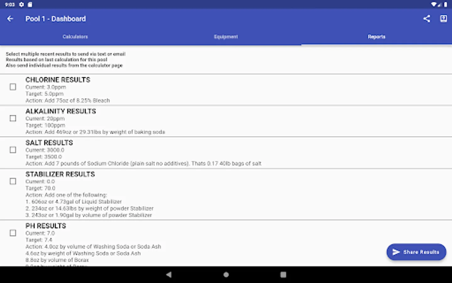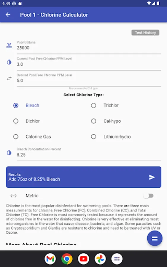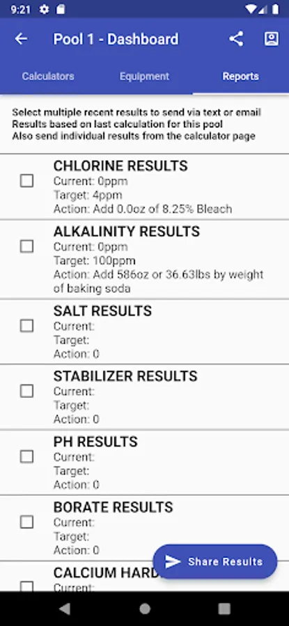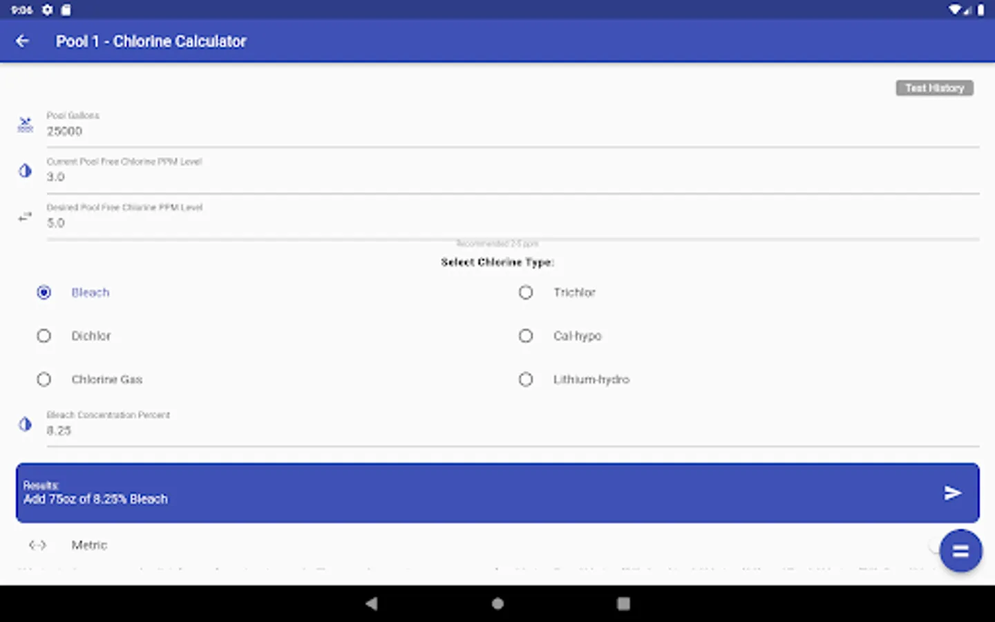 Calculate Pool Chemical levels for multiple pools. Share pool results in real time with other users. Save equipment list, pictures, warranty info and service contacts about your pool.