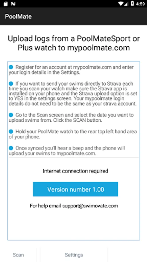 This app and watch use NFC (near field communication) to transfer the data from the watch to the phone. You need to make sure your phone has Android 4.4 or above so it has suitable NFC capabilities. To upload to Strava you need the Strava app installed.