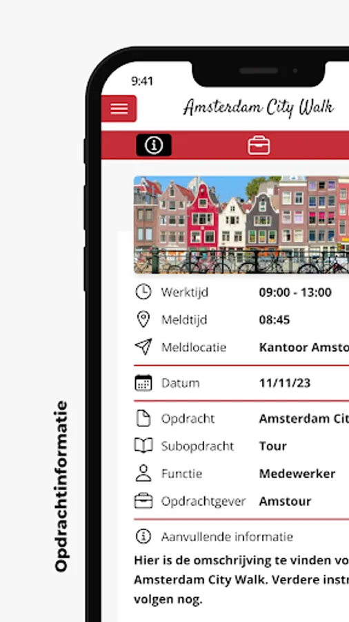 Use the Amstour app to register for guide assignments. View your agenda and assignment details or submit your hours for automatic billing.