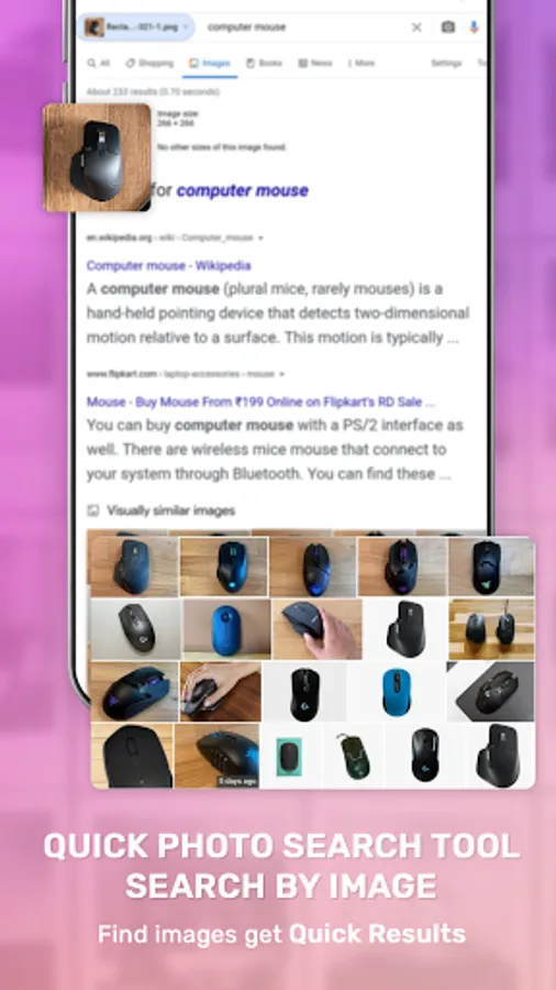 This app allows you to search for images or photos using the search engine instead of keywords. Image search is useful to check images and find if they are fake or real and find similar images, also find information about a particular object.