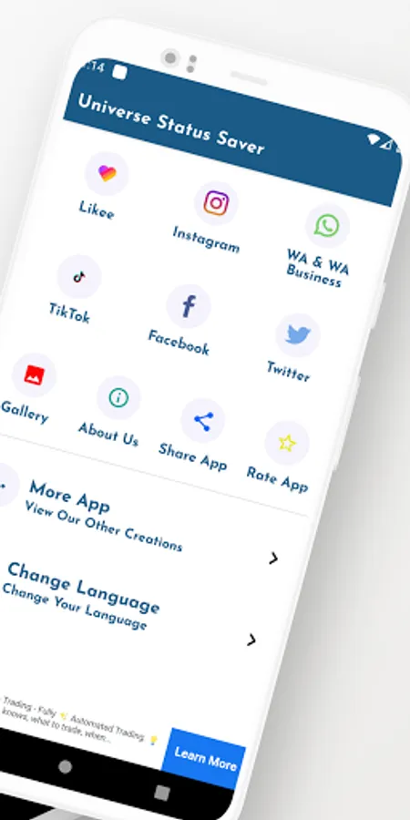 Universe Status Saver app is not affiliated with Any of the social network. It is a tool for download video and audio status of the app.