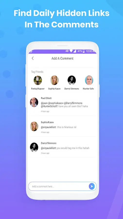 There is a daily announcement push notification that the link has been hidden in the comments of an influencer social media post. First person to find the hidden link and go to it, Wins the Treasure Hunt!