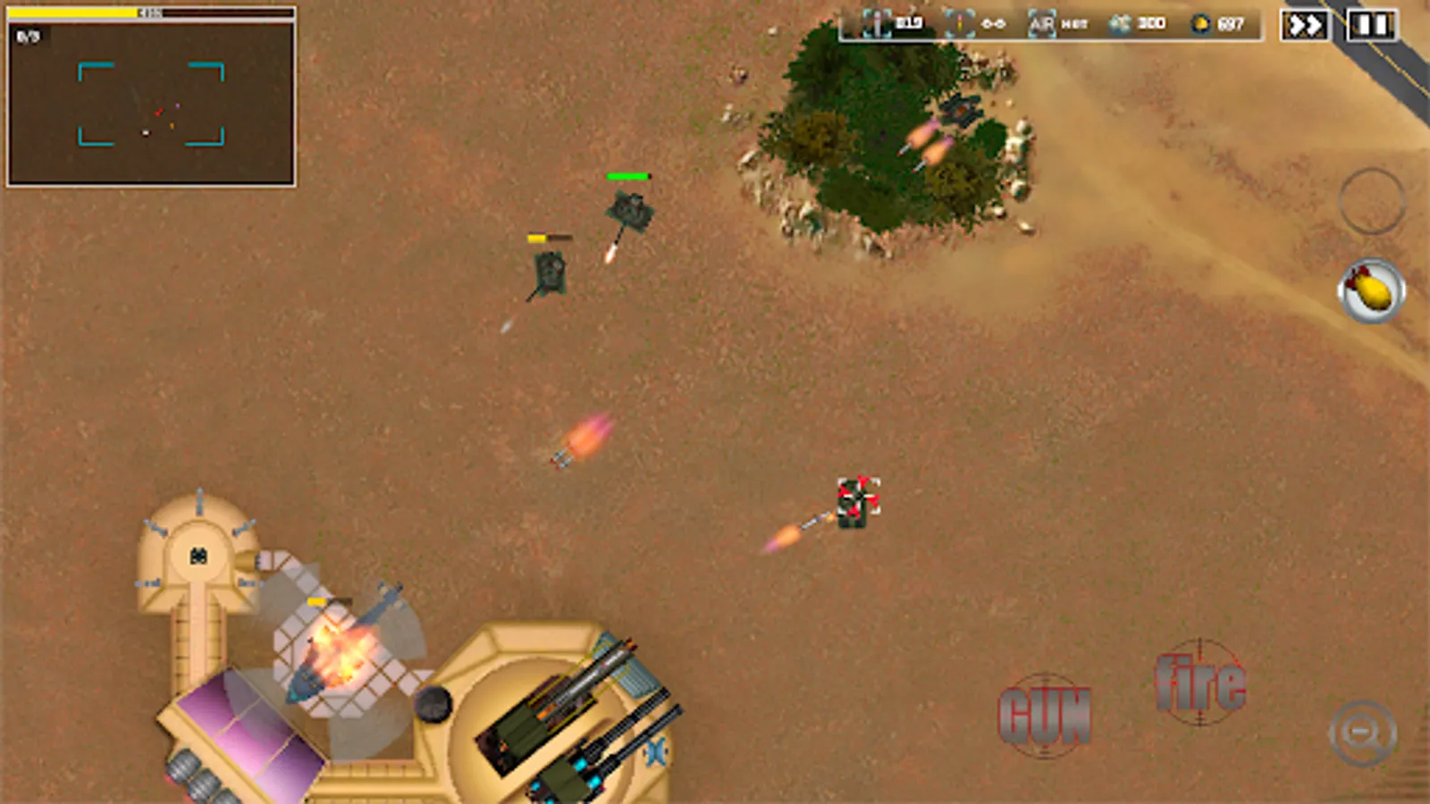 Retaliation weapons (airstrike, EMP, nuclear bomb, mining, protective dome, freezing) can inflict a crushing blow on the enemy and become a turning point in the battle. Use drones to conduct military operations and collect trophies from the battlefield. Use the logistics helicopter to resupply the base. With each victory, new battlefields open up with new types of weapons and new types of enemy vehicles.