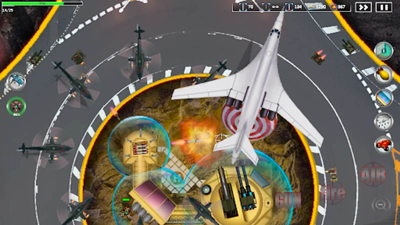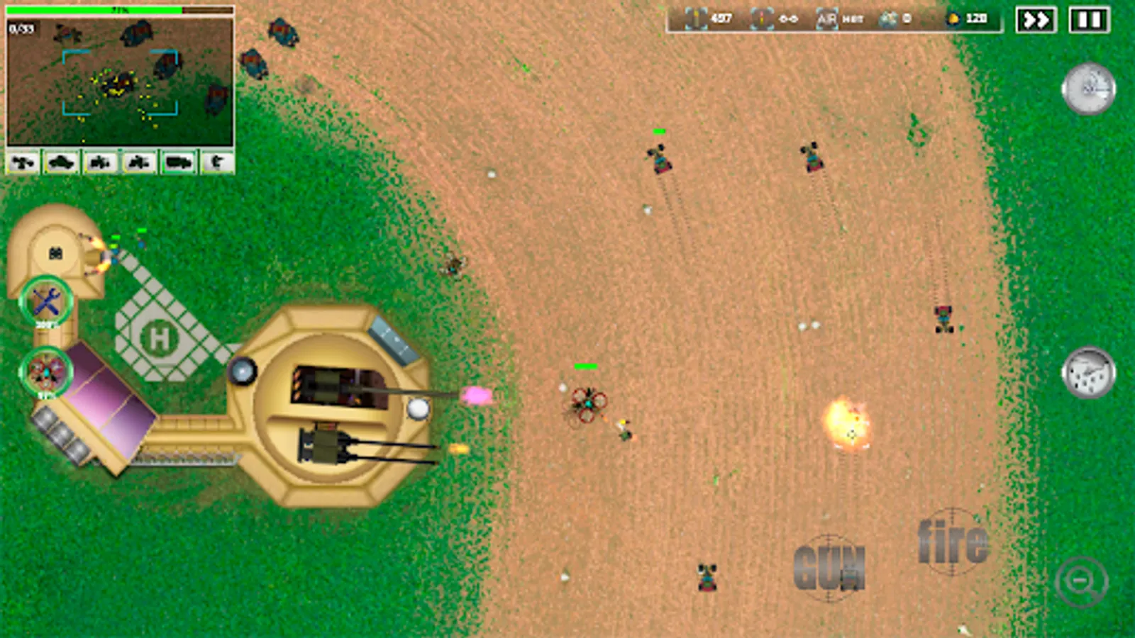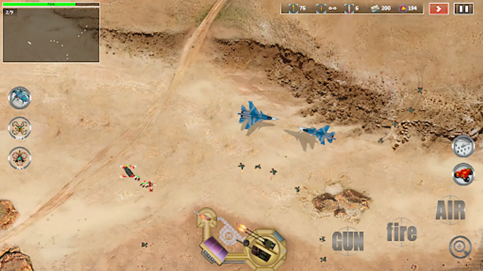 able to inflict a crushing blow on the enemy and become a turning point in the battle. Use drones to conduct military operations and collect trophies from the battlefield. Combat drones are automatically activated when the enemy approaches the first line of defense or from the drone control buttons. Use the logistics helicopter to resupply the base. With each victory, new battlefields open up with new types of weapons and new types of enemy equipment and aircraft.