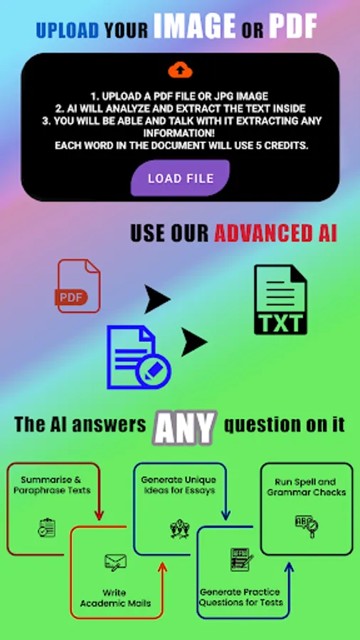 Now it can also be trained on your files, easily upload an image or PDF, our AI algorithms will extract the text inside and you can start asking any question on it.