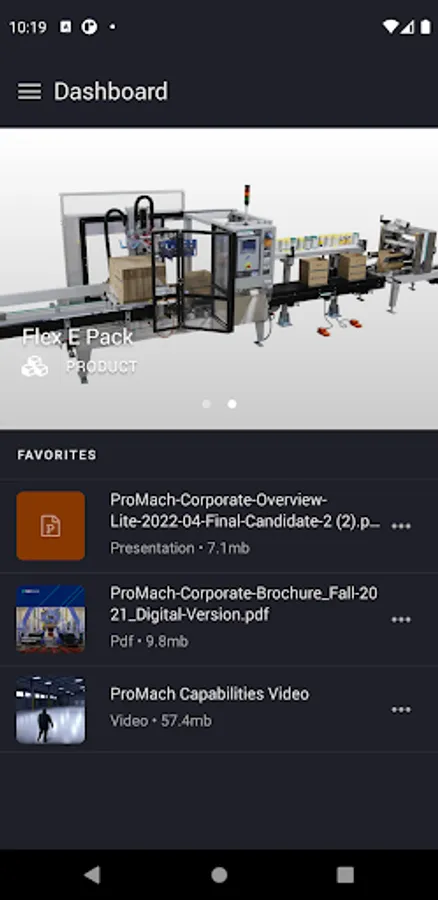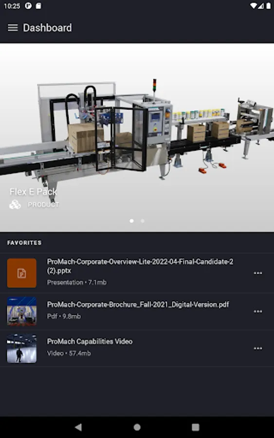 ProMach Sales Tool puts all your necessary sales materials available in one place. The entire product catalog, marketing materials, & pricing sheets are organized and instantly updated across the app, so your team will never be stuck with outdated products or pricing again. Instead of printing and distributing materials that can become quickly out of date, get direct access to current sales materials, and share those assets with customers in seconds. Present that pitch deck or client solution on the fly and stay responsive to the needs of anyone in the field.