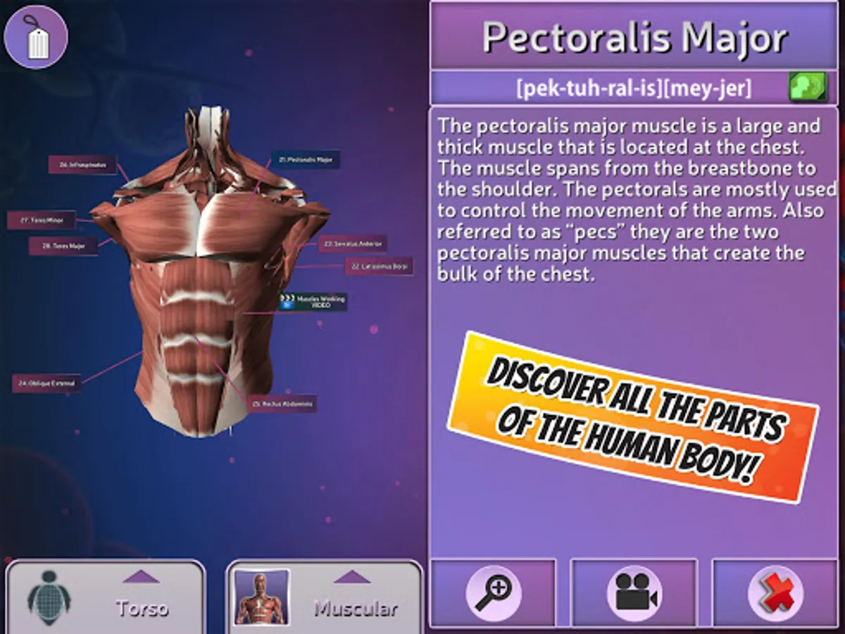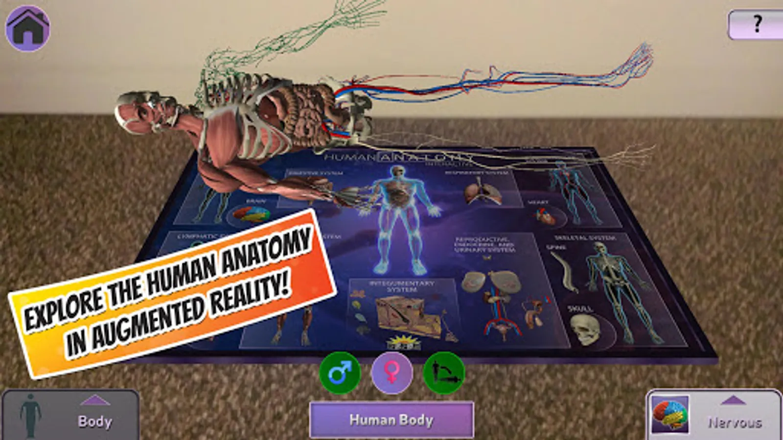 Put on your white coat and explore the inner systems of the human body with this Augmented and Virtual Reality infused app by Popar. Disassemble the major bodily systems, all while learning about each individual component's functionality and purpose. Learn the differences between specific bodily objects, as well as the structural differences in both male and female anatomy. Read detailed descriptions on every major organ, as well as their contribution to the body's health and well-being. Unlock Virtual Reality Mode to use your own environment as your operating room! Move around all virtual bodily systems in 360°! Unlock high quality animated videos of the intricate systems in motion, including the heart's pump cycle, skeletons in motion, and so much more! Even play the Build-a-Body game and have hours of fun for the whole family!