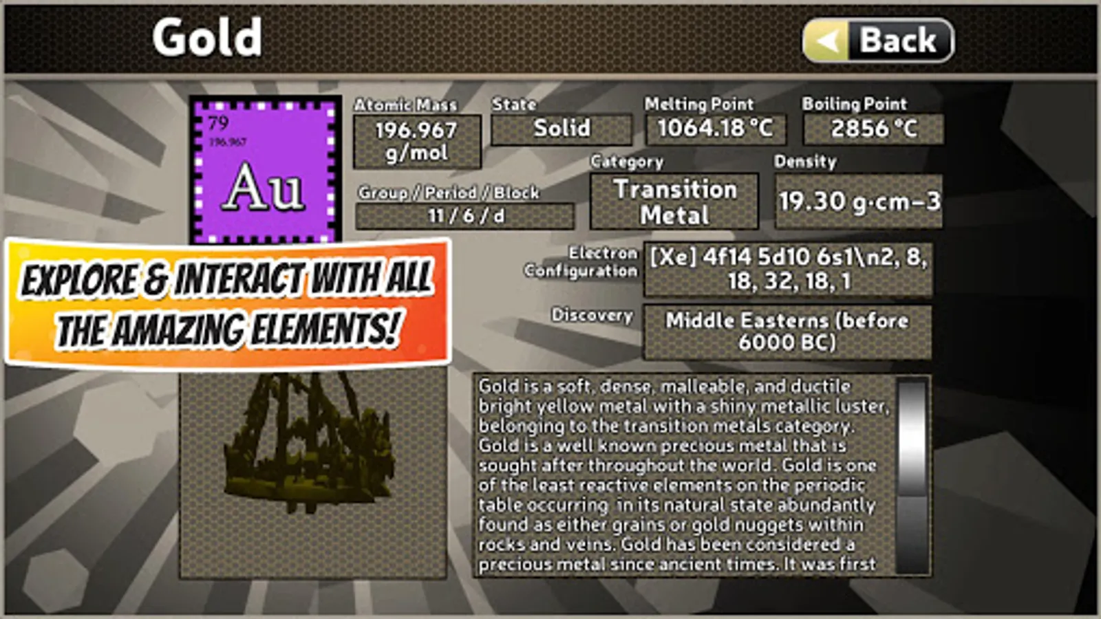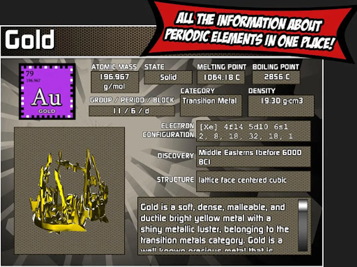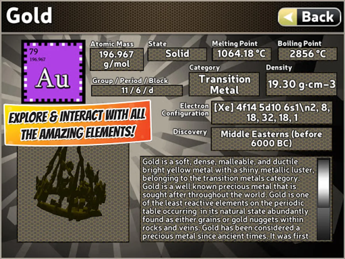 Light your Bunsen burner and prepare to discover Popar’s Interactive Periodic Table of Elements! You are about to embark on an interactive Augmented Reality learning experience that explores the science, origins, facts, stats, and various uses of all the elements! Dive even deeper with the compounds mode where users can mix and match the elements and learn 100’s of different formulas. Interactive 3D models showcase all the different elements including the metals, gases, liquids, and more! The Interactive Periodic Table of Elements app feature’s easy to use navigation that is sure to be hours of fun for all chemistry lovers everywhere!