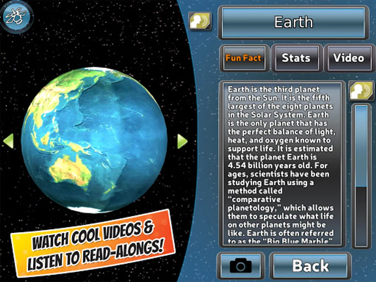 -Resize, rotate, and zoom into every planet, probe, or satellite with easy, one-touch screen gesture interactions