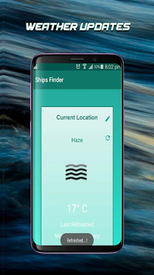 Ship finder live has weather module also which tells te exact weather of your current place and which ever place you will search in the search bar of boat tracker.