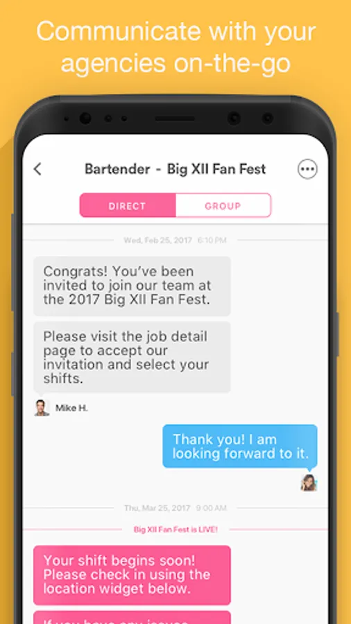 -Easily receive and respond to job invites right from your phone.