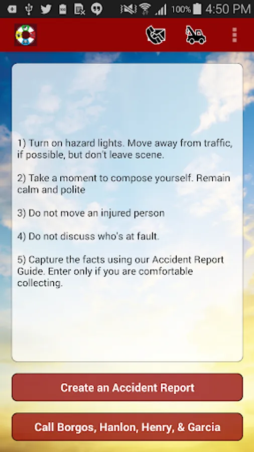* You’ll need to create a report at the accident scene for the app to accurately record the date, time and location. This feature also requires that location services be available on your device.