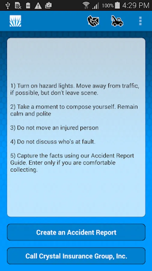 * You’ll need to create a report at the accident scene for the app to accurately record the date, time and location. This feature also requires that location services be available on your device.
