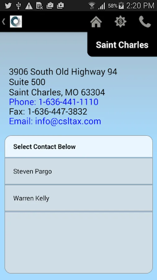 Contact Section – Call or email the staff person right from your phone. Also a handy map routes you right to the office.