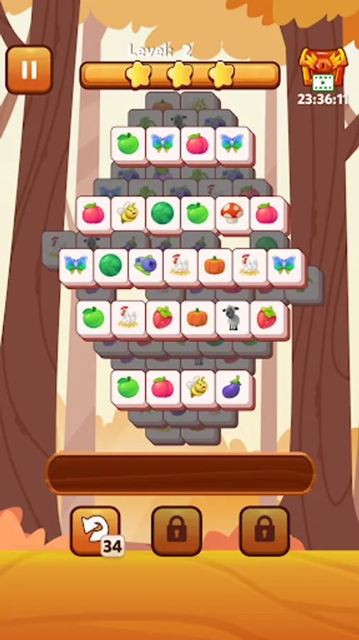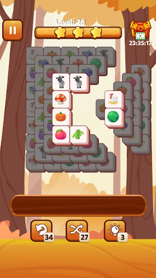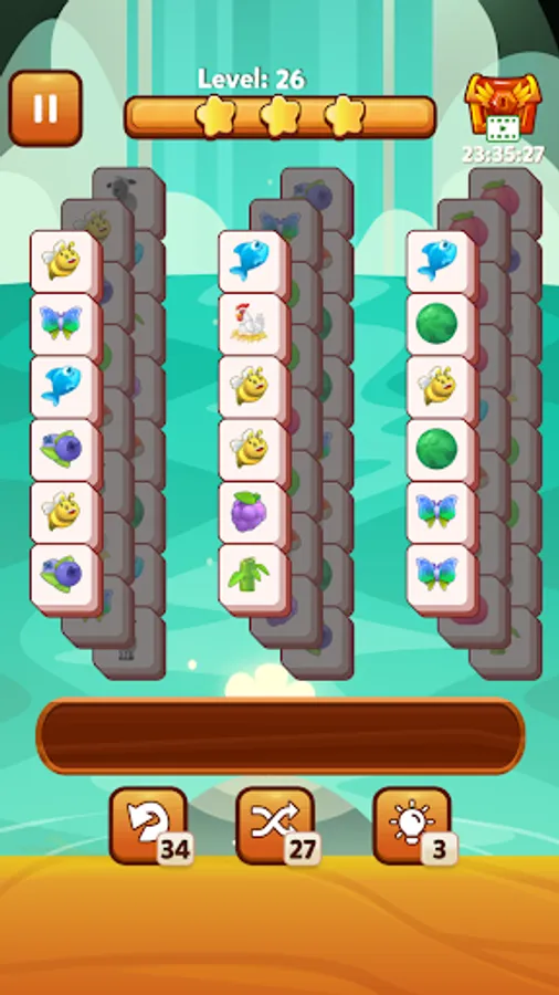 Select one tile, then another, Simply match three tiles to reveal more tiles underneath,to have them to create of 3 in the slot below to clear.