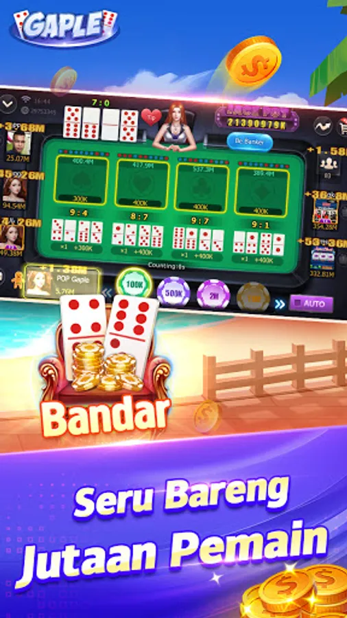 POP Gaple, a collection of popular Domino Gaple, Domino KIUKIU, Domino Ceme, Bandar 99, SICBO and QIUQIU Baccarat games. The appearance of POP GAPLE is simple and charming. How to play Gaple, Domino KIUKIU, Domino Ceme, Bandar 99, SICBO and QIUQIU Baccarat is easy, winning is easy too! Play this most popular casual game with millions of Indonesian players . Download and login, every day there are FREE coins!🥳🥳