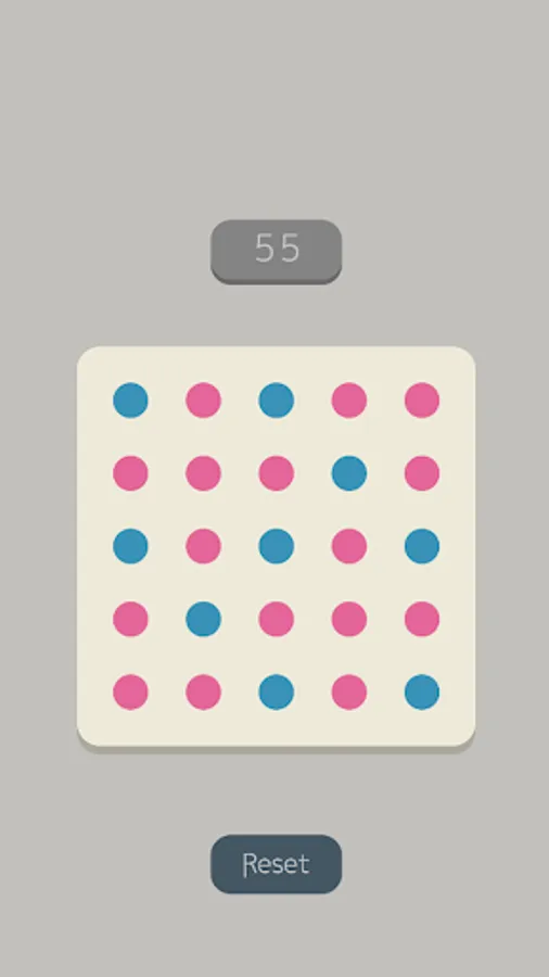 Just change red to blue. However, there are many things to think about unexpectedly because the color of the place where you tap and the surrounding color change. But don't worry. You can return to the initial position at any time with the reset button. So you can feel free to challenge as many times as you like.