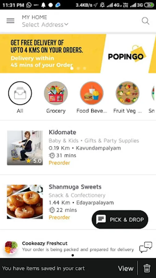 Popingo - The City Market App. The App lists Merchant Stores from across Coimbatore city. The app includes merchant stores from categories including Food, Medicine, Grocery, Fruits & Vegetables, Fish & Meat, Babycare, Eldercare, Petcare and much more. Customers can easily order their daily essentials from their home at convinience and get their orders delivered to their doorstep.