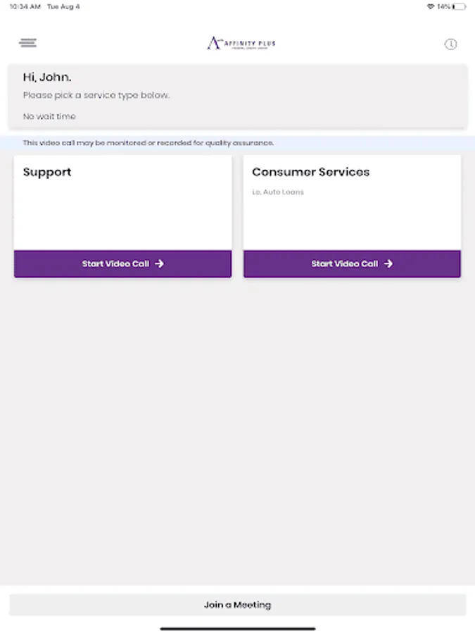 Affinity Plus Video Banking lets you securely interact with professionals you trust from anywhere. The app allows you to video chat and conduct business all in one simple tool.