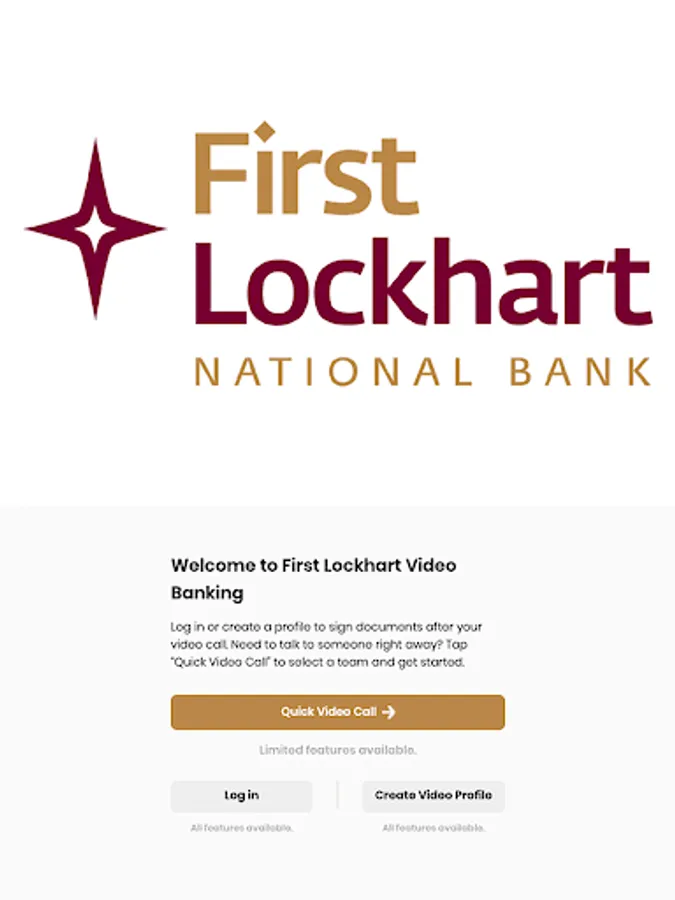 First Lockhart Video Banking allows you to bank with us like never before! Your First Lockhart banker will be available Face-to-Face and can handle most any service, just like if you were in the branch.