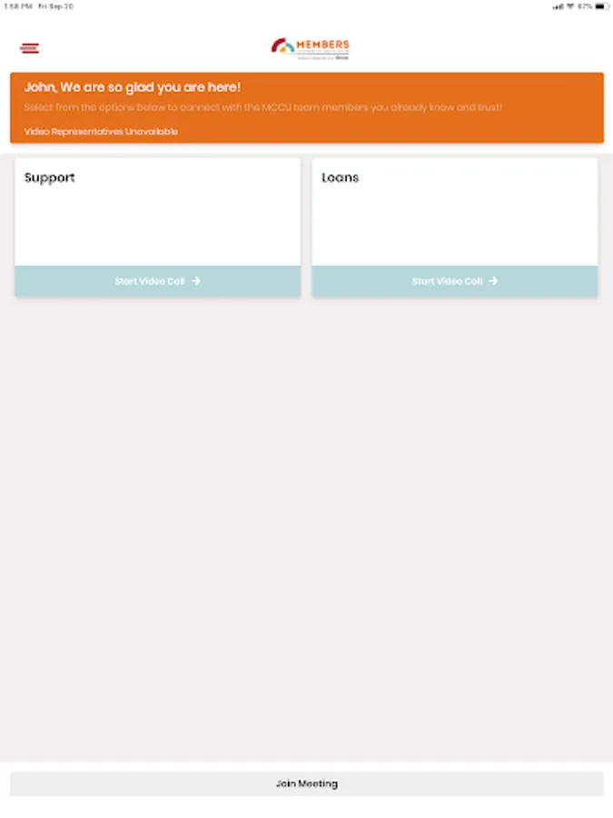 Members Video Banking lets you securely interact with professionals you trust from anywhere. The app allows you to video chat and conduct business all in one simple tool.