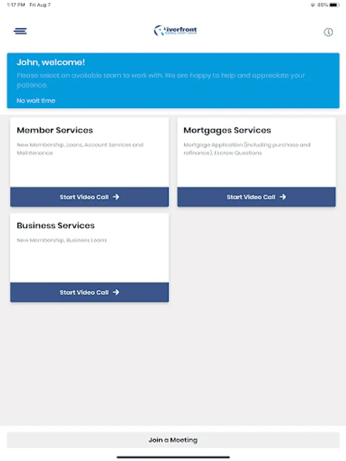 Riverfront Live lets you securely interact with professionals you trust from anywhere. The app allows you to video chat and conduct business all in one simple tool.