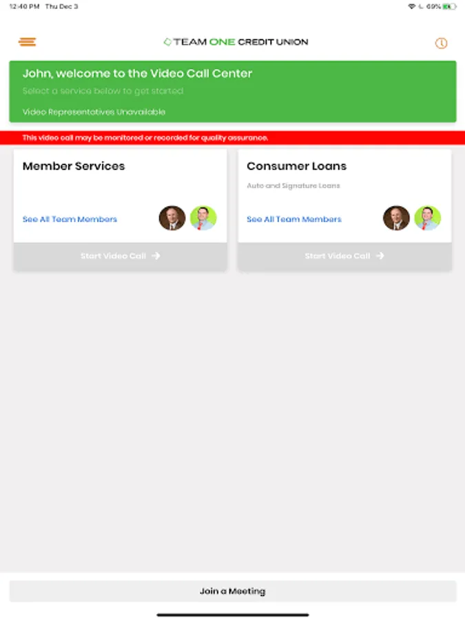 Team One Video Banking lets you securely interact with professionals you trust from anywhere. The app allows you to video chat and conduct business all in one simple tool.