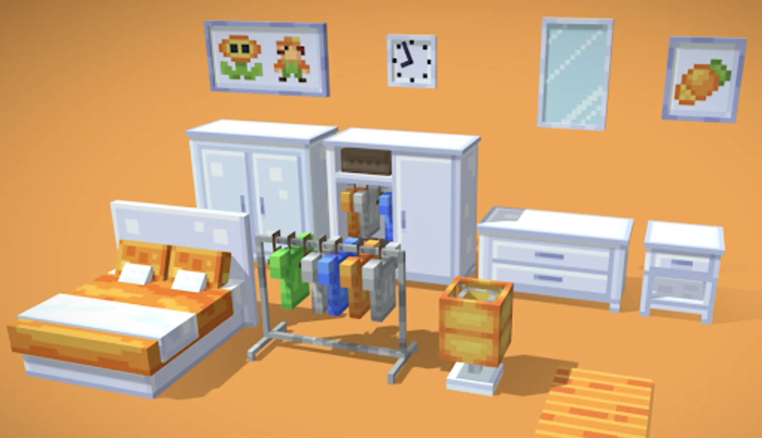Not just limited to aesthetics, our Furniture Mod addon also brings a practical dimension to your gameplay. Craft functional furniture pieces that not only look great but also serve a purpose. Imagine cooking delicious meals on a well-equipped kitchen stove or organizing your items in a spacious chest of drawers. It's all possible with our feature-packed mod.