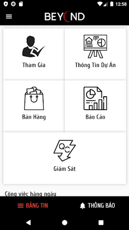 BEYOND ICARE is a multifunctional application for working, supporting, caring and managing personnel exclusively for users assigned or decentralized by BEYOND in BEYOND projects in Vietnam. The application uses phone numbers and email as the platform with the main features: