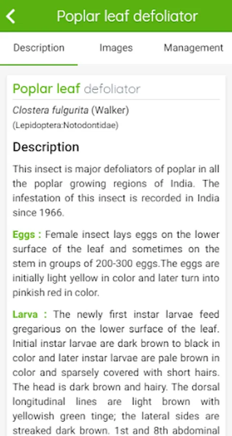 Kumar, A., Savita and Yadav, N. (2017). Insect Pests of Poplar identification and management, (Android mobile app). Forest Research Institute, Dehradun, India-248006.