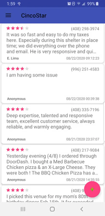 * CincoStar is a phone number-based review platform that allows you to rate and review the people you interact with. Think of it as Yelp, but for people instead of businesses.