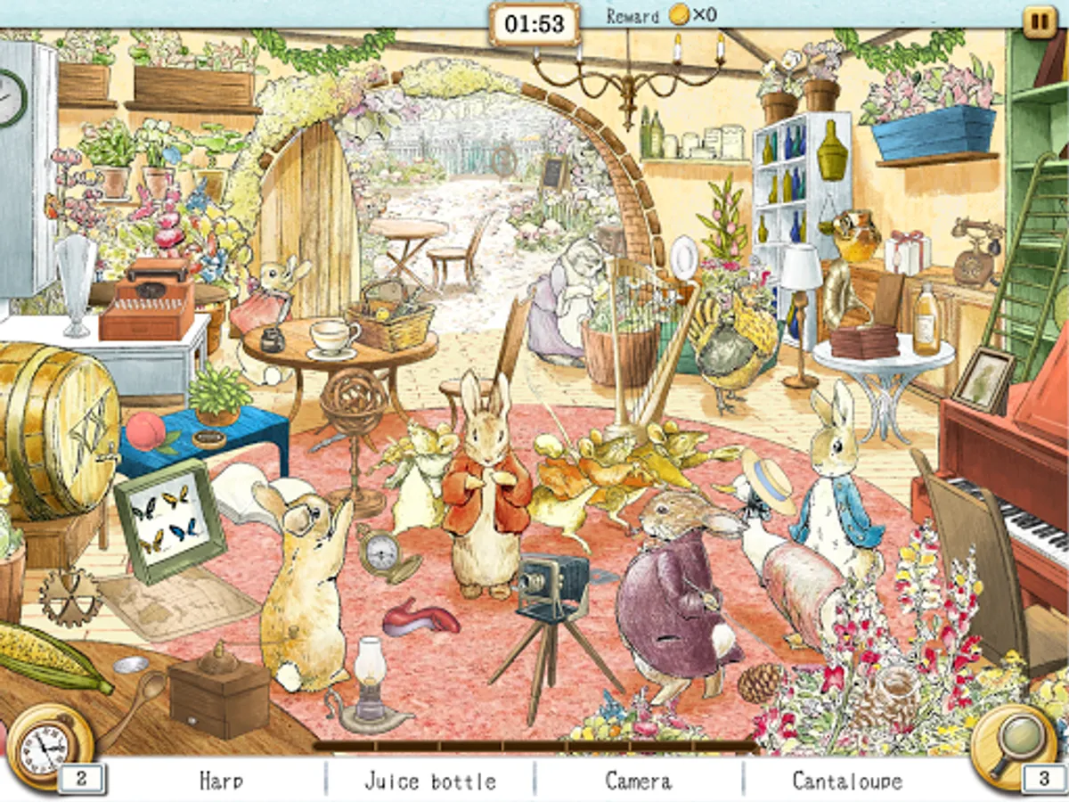 Search for hidden objects in cute illustrations that faithfully recreate the style of the original books.