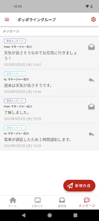 For example, if a member wants to contact the administrator, such as "I will be late due to a train delay," messages can be used.