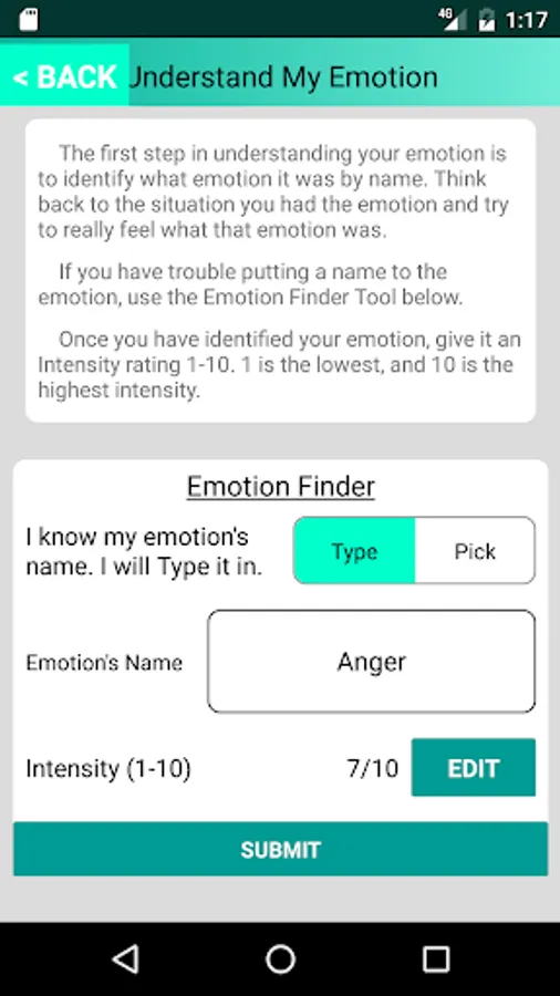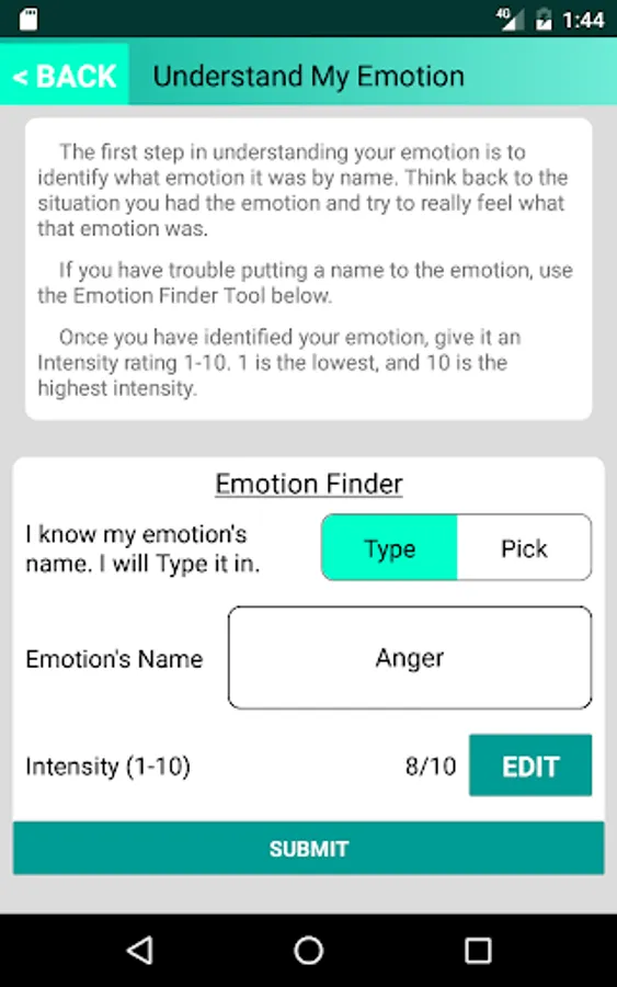 • Understand My Emotion: A common thought is that we feel some way for no reason at all. But did you know that ALL emotions have a reason behind them? Not only that, but they have a specific purpose. The stronger the emotion, the more you should probably look at it. Typically though, there are 3 main reasons: