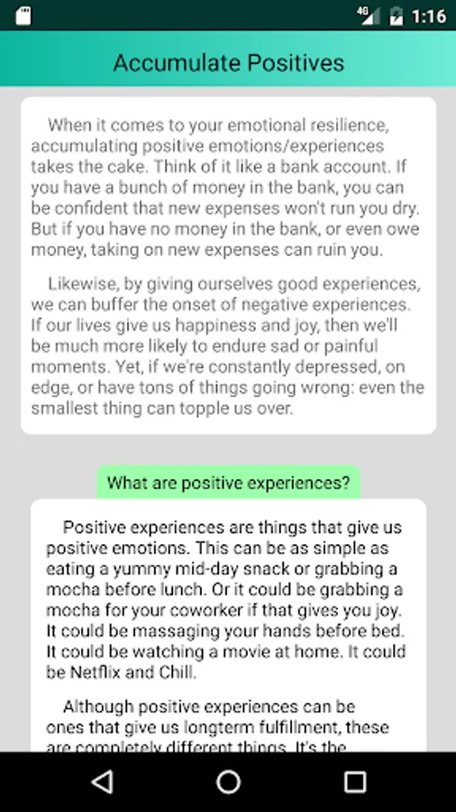 • Short-Term Happiness: Learn the importance of short-term happiness and how it actually has a great influence on your long-term happiness as well. Then use this tool to help you increase the number of daily positives in your life. You shouldn't live for the short-term, but neither should you live for the long-term.