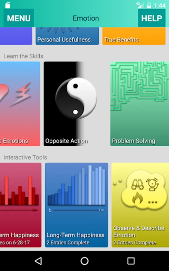 Many of these tools are powerful while you're first learning DBT. But they are also incredibly powerful as a refresher, whether it's been several years since you last practiced, or you just can't remember how to do the skill properly. Maybe you're overwhelmed, or maybe you're just new to the skill. Beginners and Advanced DBT practitioners will find value in this app now, and for years to come should they remember to use it.
