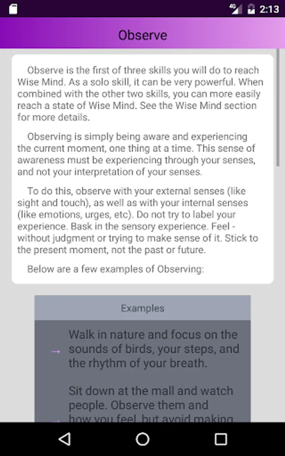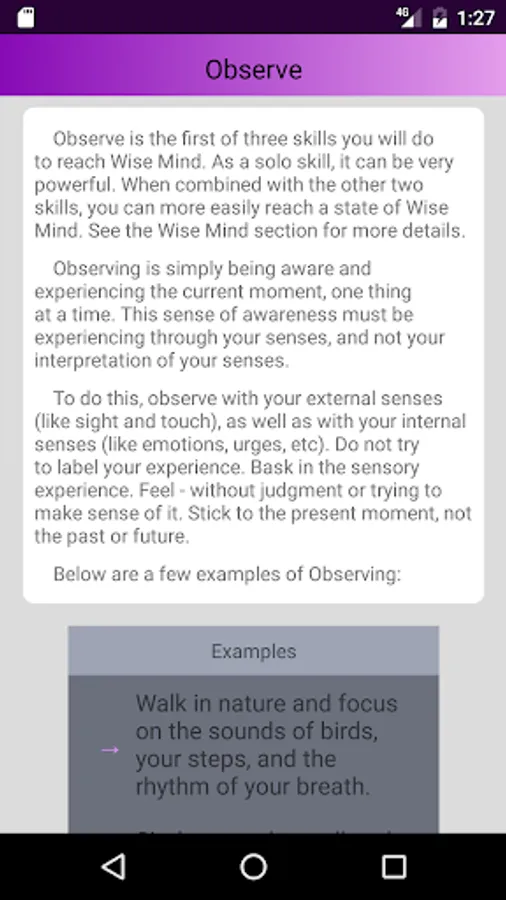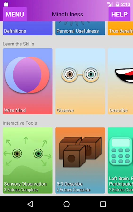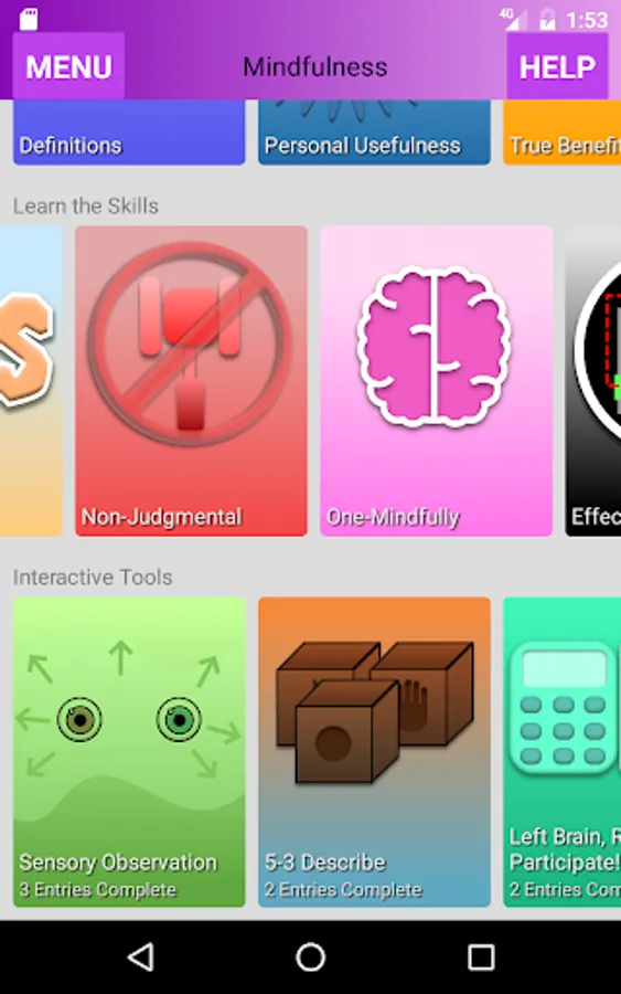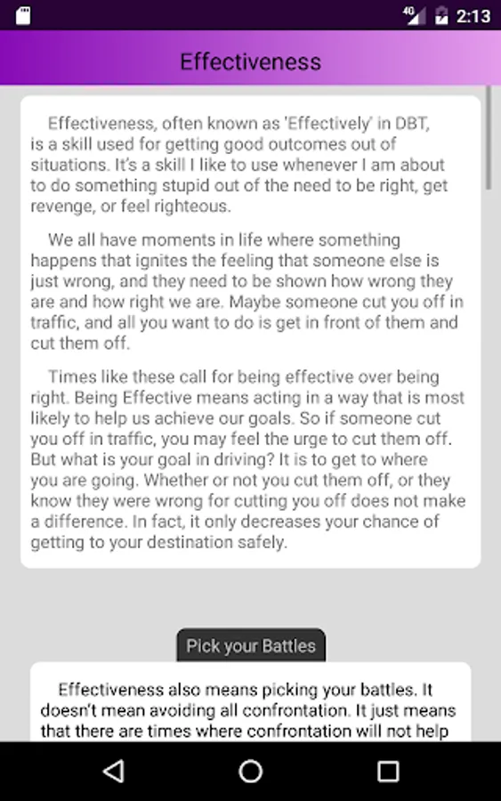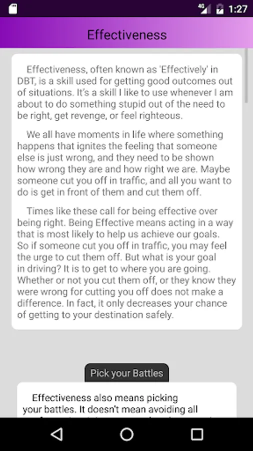Many of these tools are powerful while you're first learning DBT or as a refresher. Maybe you're overwhelmed, or maybe you're just new to the skill. Beginners and Advanced DBT practitioners will find value in this app now, and for years to come should they remember to use it.