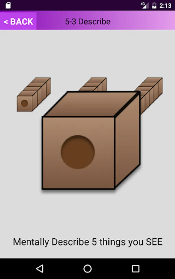 • Sensory Observation: A little game where you see a word appear on the screen indicating a sense. By playing this game, you can quickly become more in tune with your senses. For newbies, this can be a life changer. For people already accustom to practices such as Mindfulness, it can simply be a great daily exercise to warm up for the day, or even wind down at night.