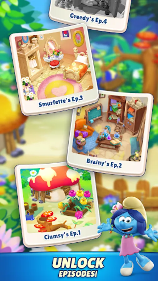 EXPLORE SMURFS VILLAGE! - Blast away through puzzles to unlock new Episodes!