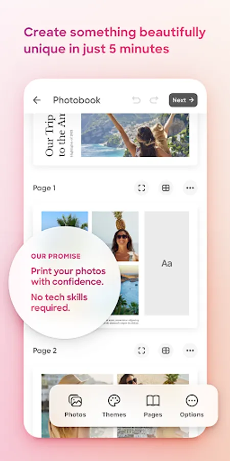 Once you’ve picked your photos, our super-fast app creates your layout automatically. It does it all: