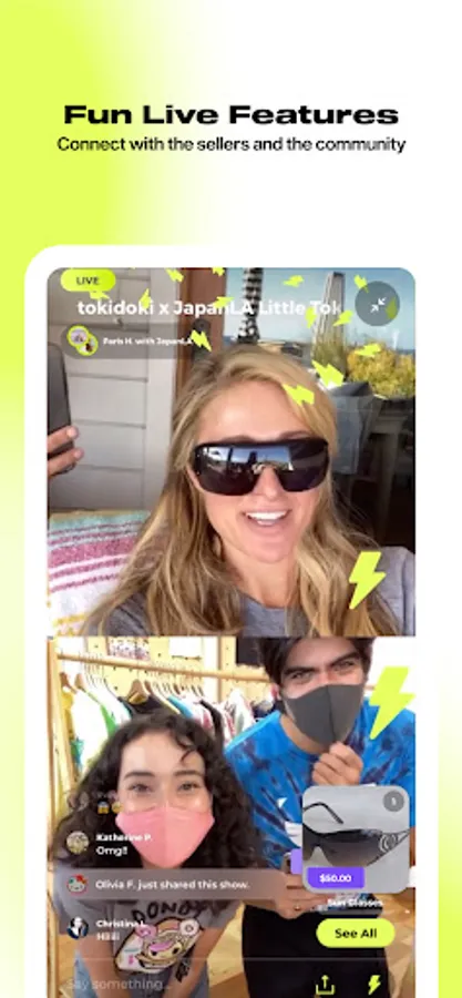 Watch live shows from your favorite sellers, chat with shoppers and hosts, and securely purchase unique products, all without ever leaving the app. New shows are added daily, and you can follow or add shows to your watchlist to get notified when they go live.