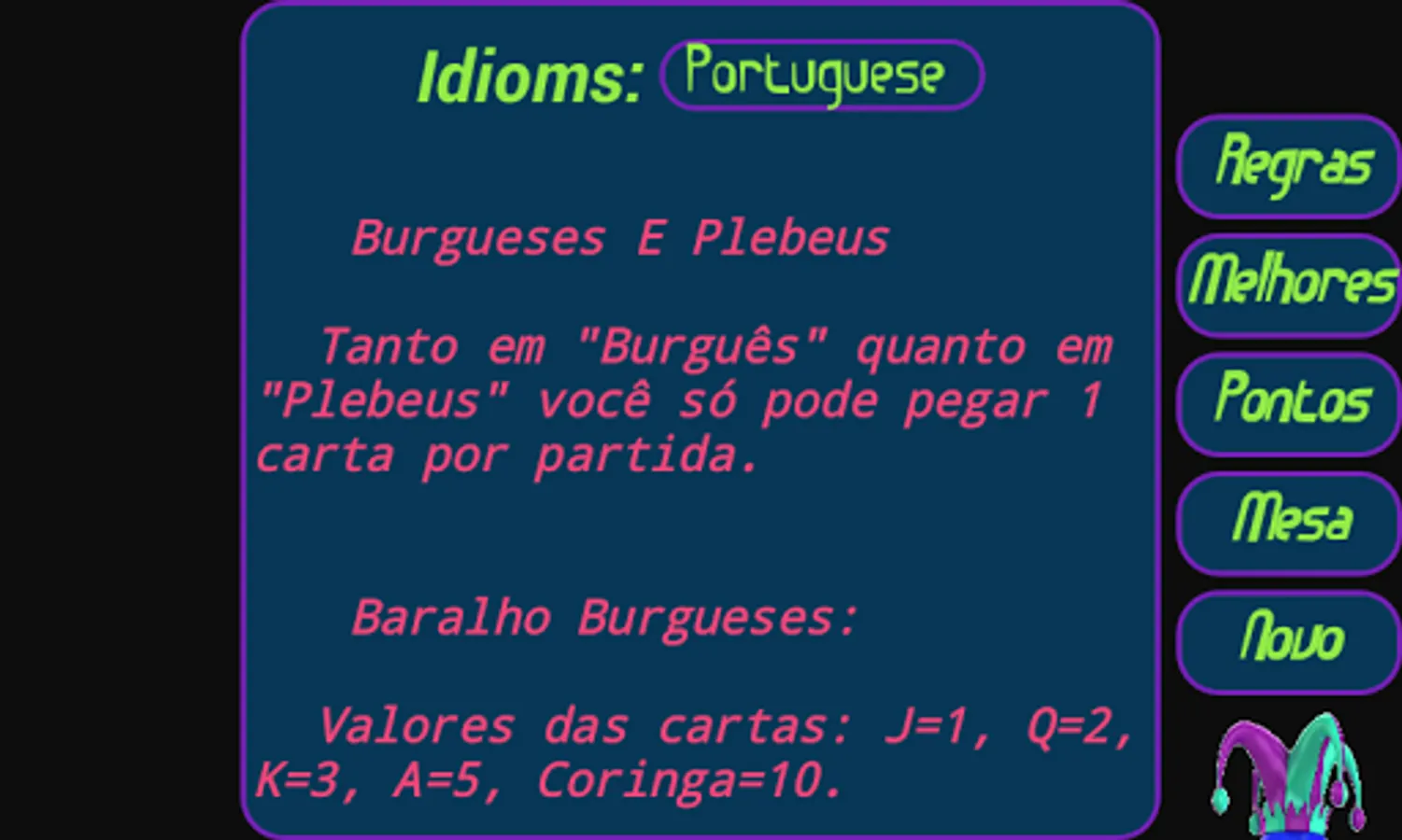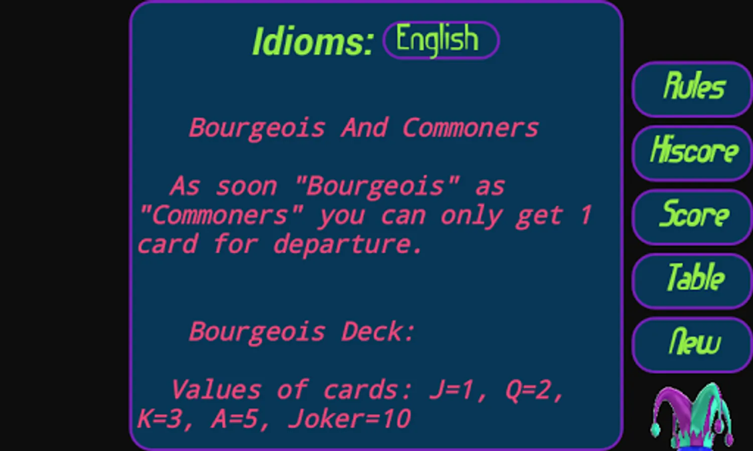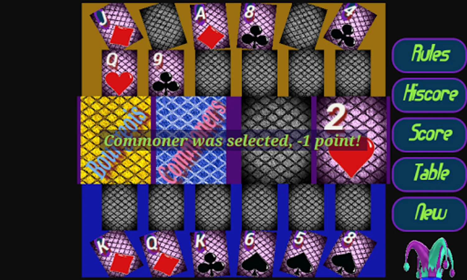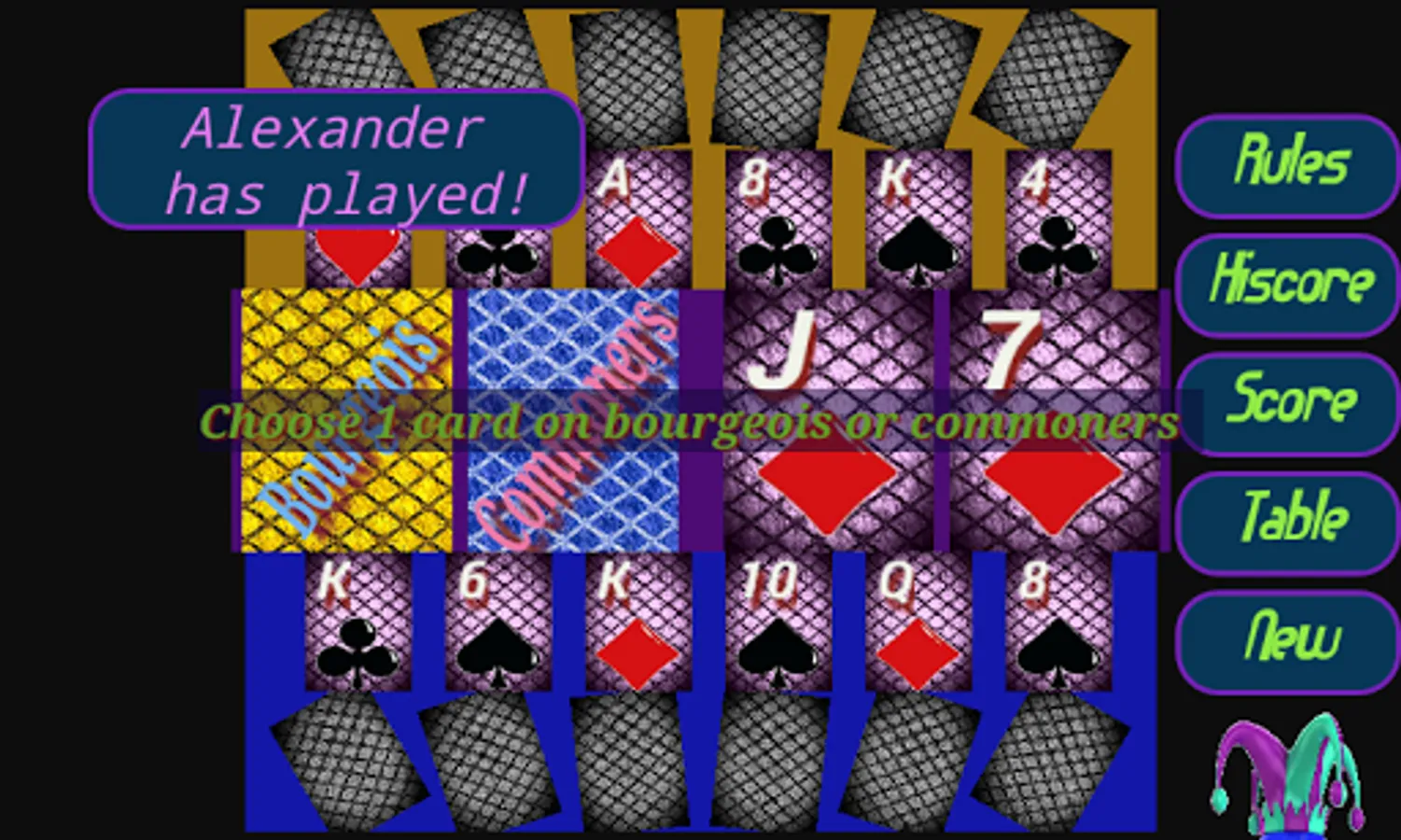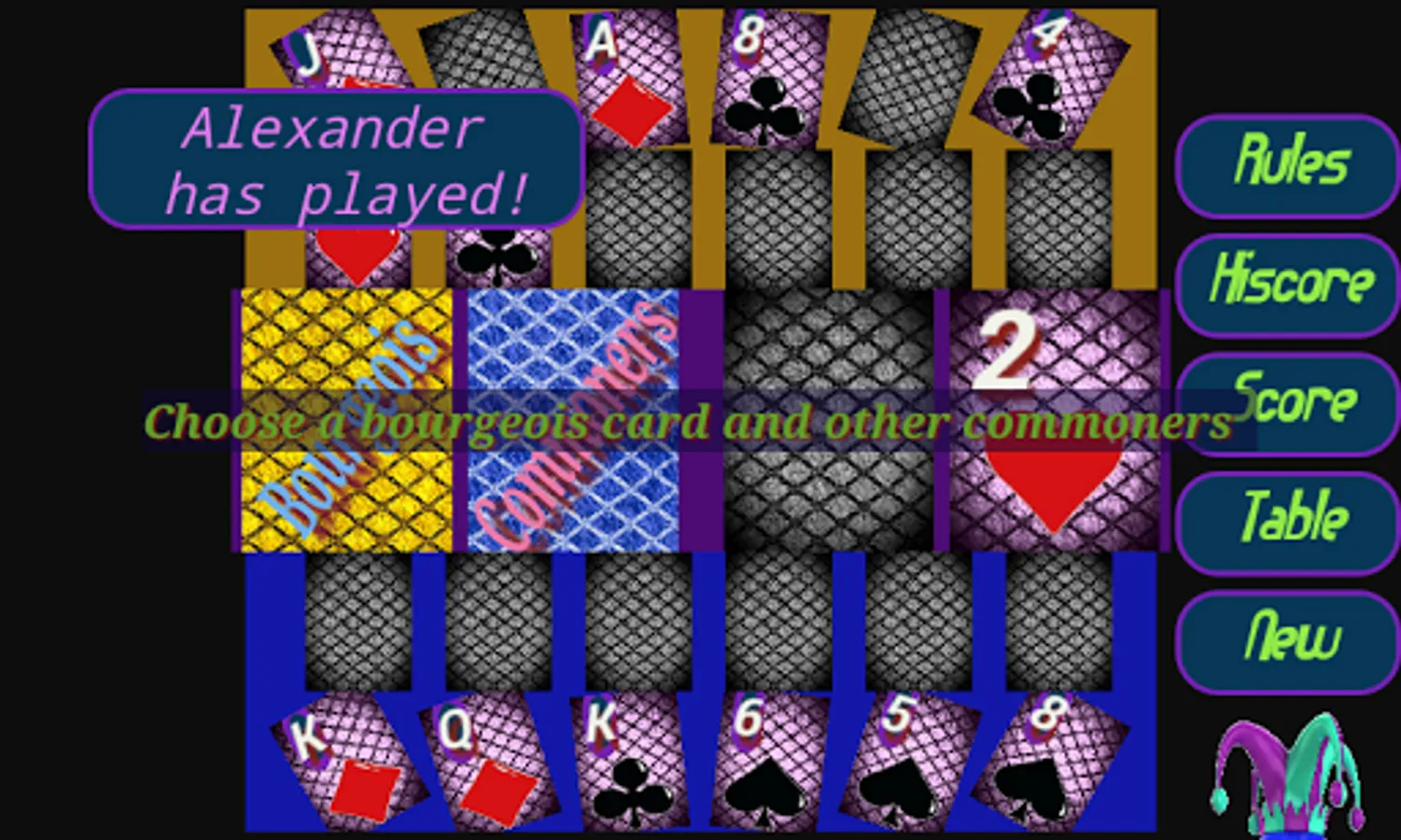 Choose between 2 decks, one is bourgeois and the other is commoners.