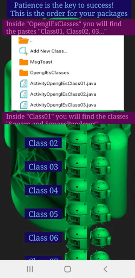 I will update more classes depending on the success of this app, more than 60 classes waits for you, including games like exemple, you will learn how to make in 2D and 3D.