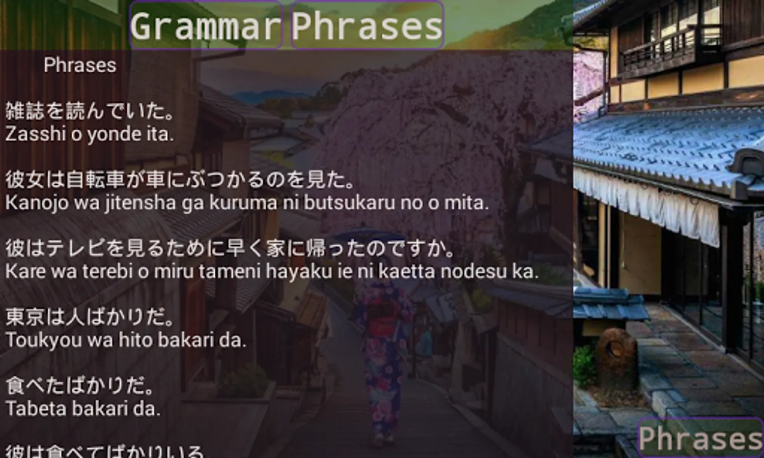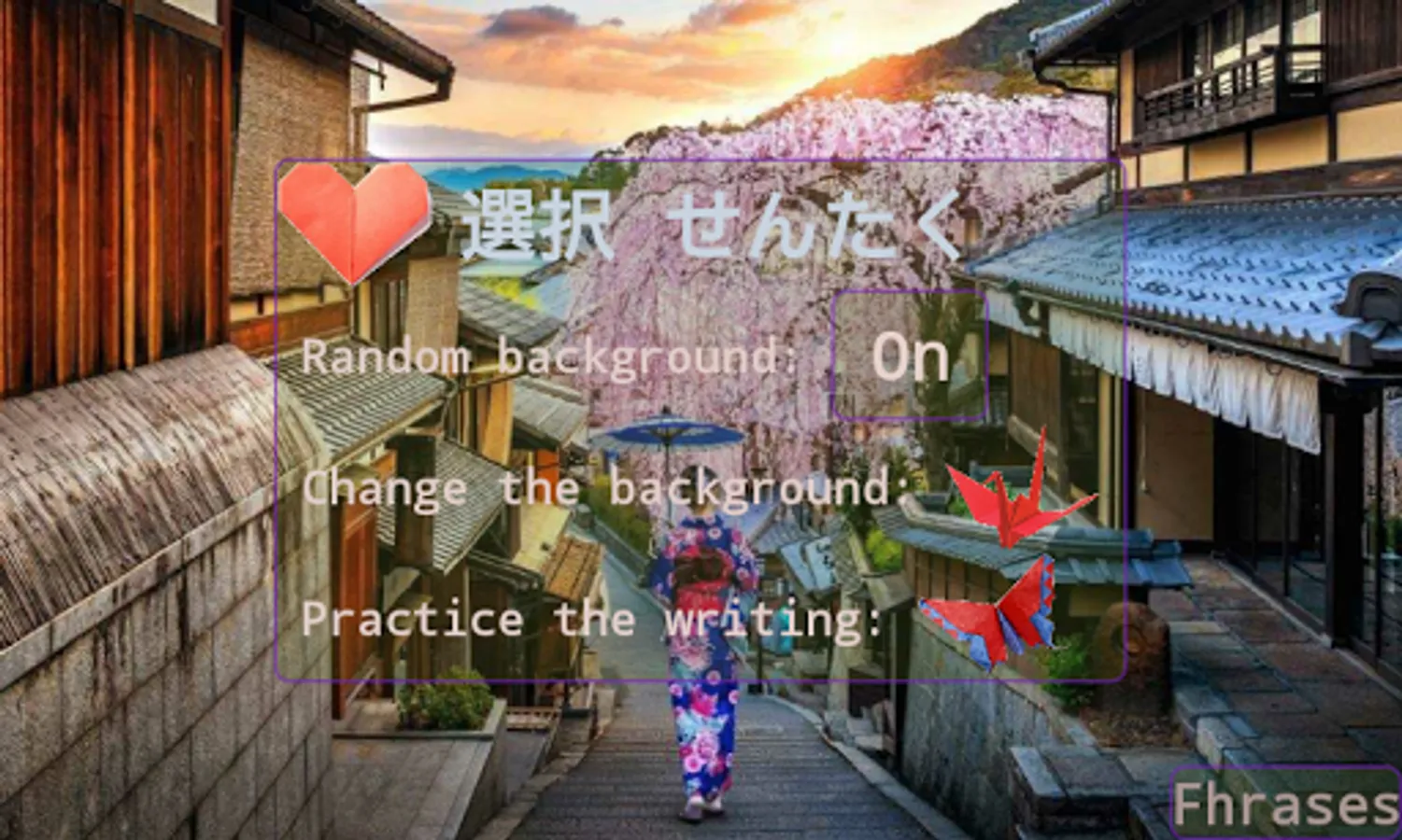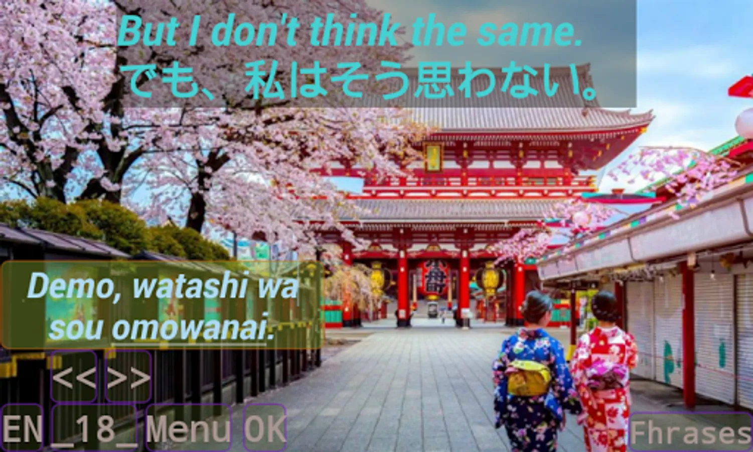 Change between Portuguese and English while you see the phrases on Kanji and ro-maji.