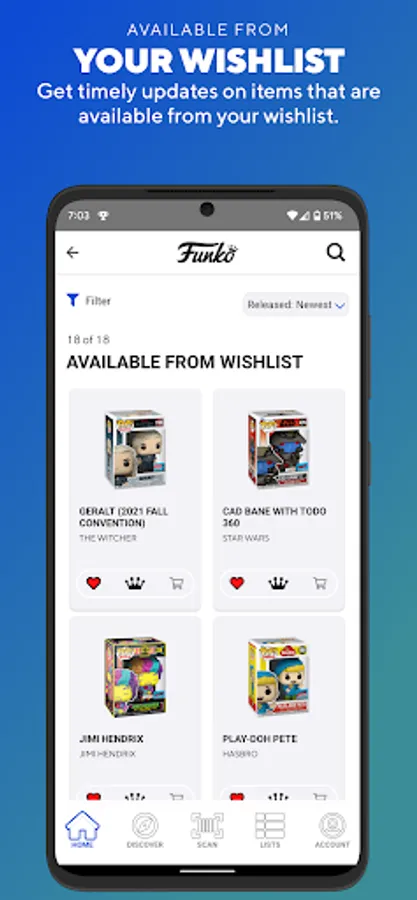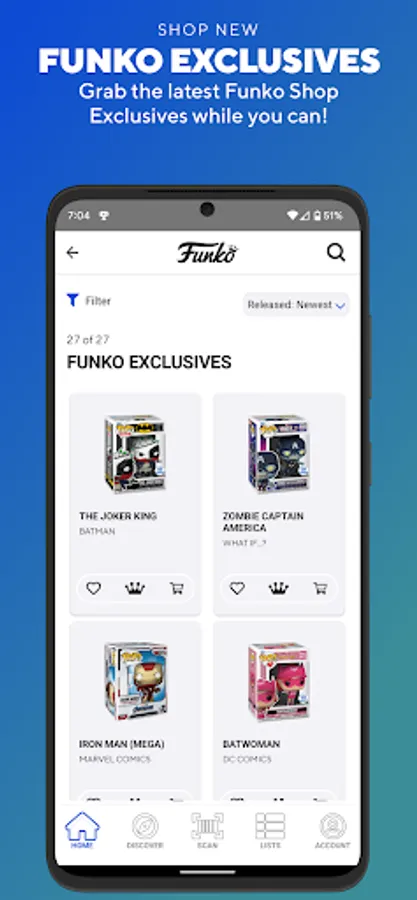 At its core, the all-new Funko app is all about discovering new and vaulted Funko products, building collections and wishlists, and tracking the values of individual products or entire collections.