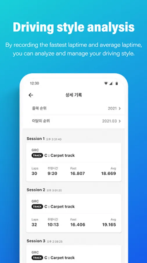 By recording the fastest laptime and average laptime, you can analyze and manage your driving style.
