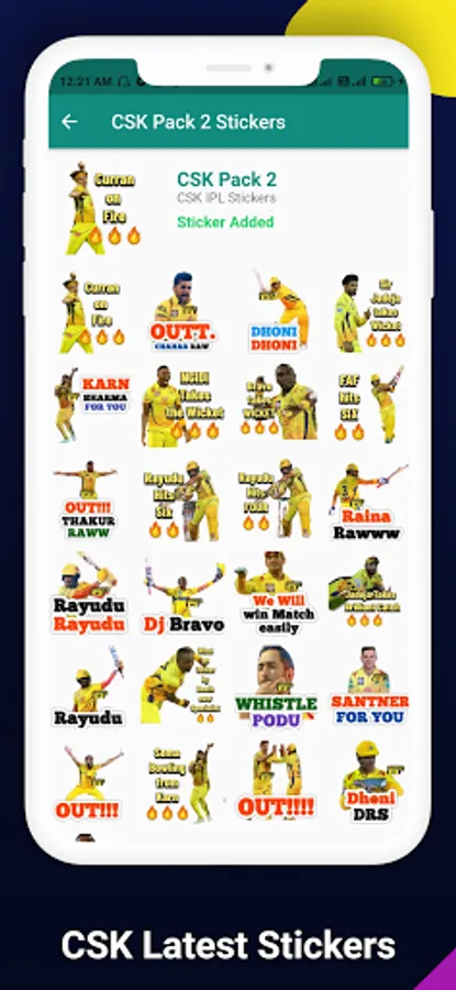 Surprise your friends and family members with awesome, cool and funny stickers in WhatsApp chat. With this CSK IPL 2021 Stickers for WhatsApp - IPL 2021 WAStickerApps. This app is specially design for CSK Fan.