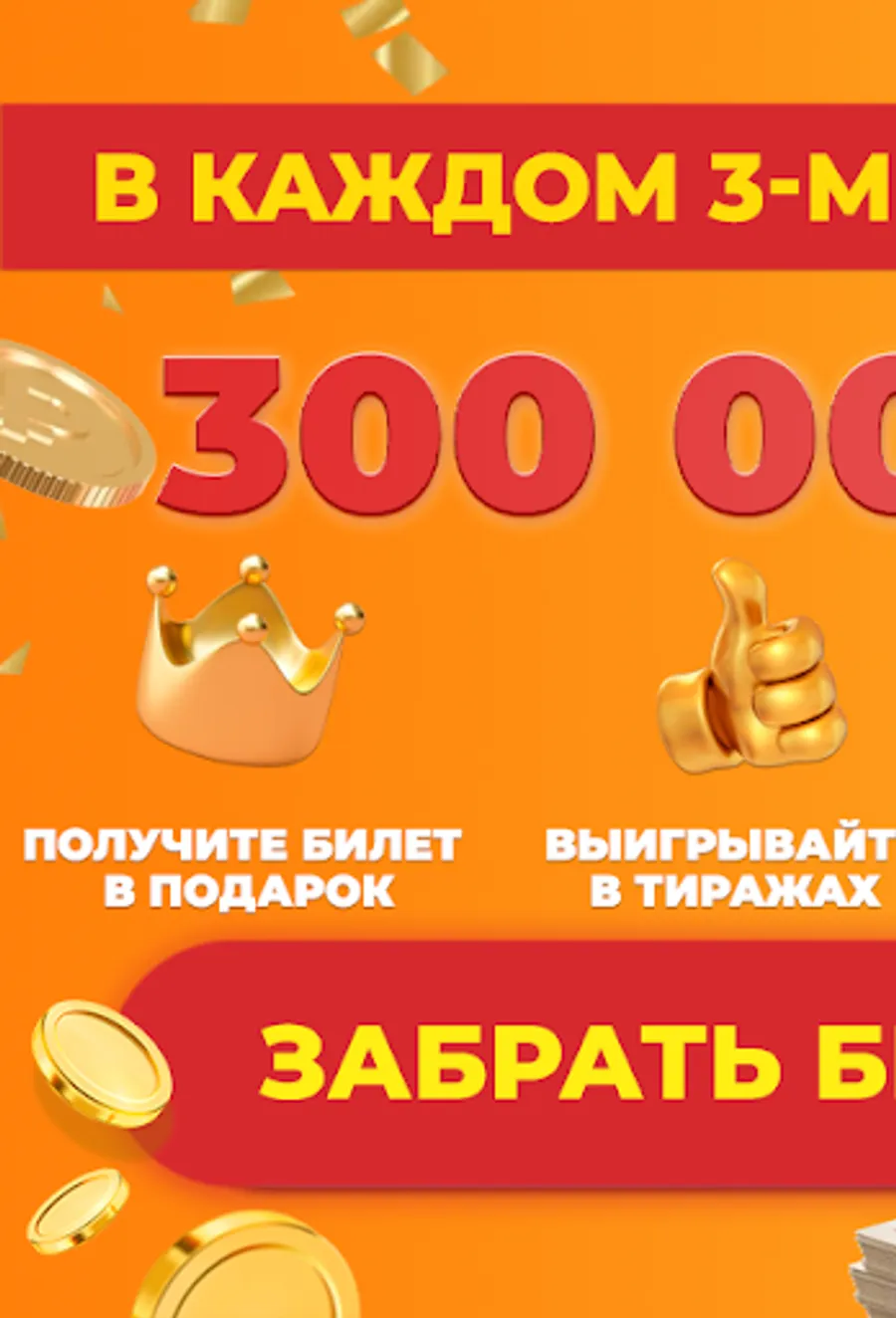 Every day we will give away more than 1000 tickets for the express draw of the Russian Lotto in the application, you just need to get a ticket at the touch of a button, wait for the result of the draw, and withdraw your winnings to the card.