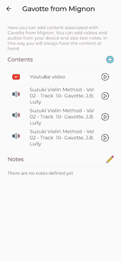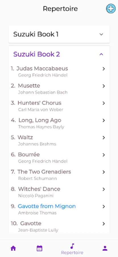 Add pre-defined repertoire as the Suzuki Method or create your own with this fully customizable app.