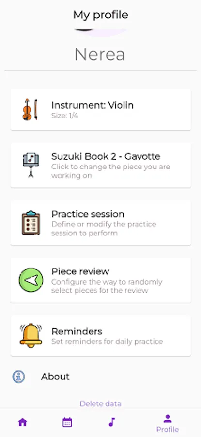 With Music Practice you'll be able to better organize your daily practice of violin, piano, guitar or cello.